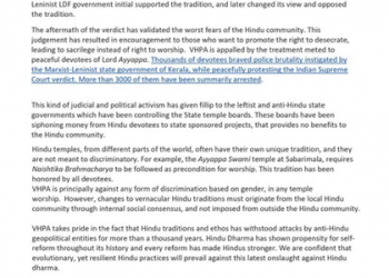 Read moreDetailsNov 5, 2018 VHPA Strongly Condemns Judicial and Political Attack on Hindu Dharma in Kerala Press Release The following statement...